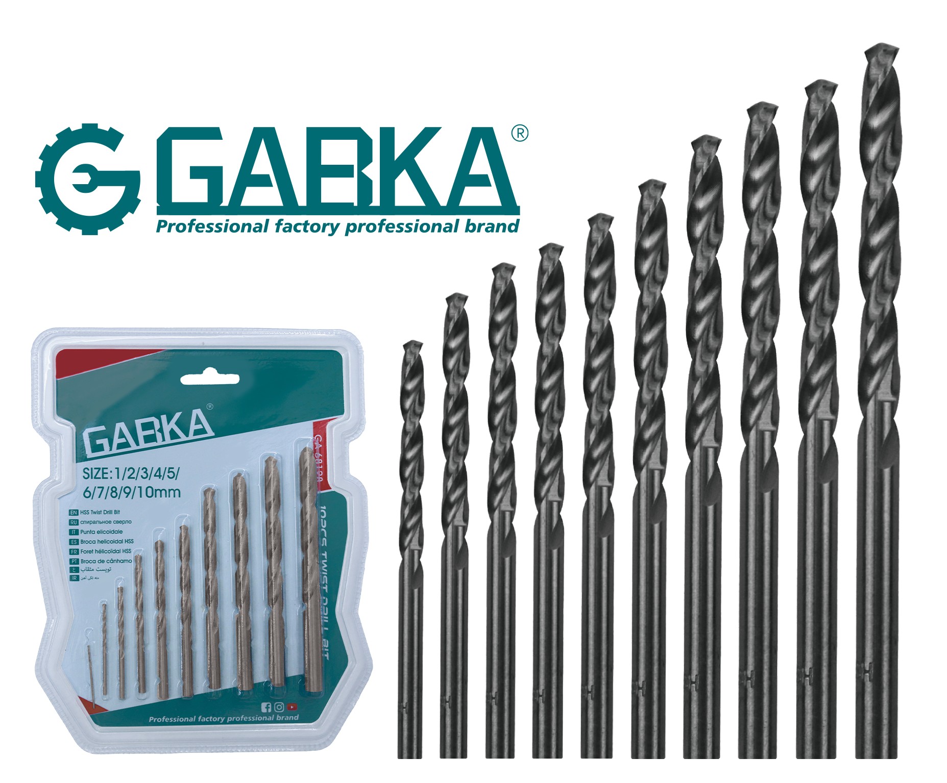 GA-68128 Σετ 10 τεμ. ελικοειδή τρυπάνια (διπλή φυσαλίδα)