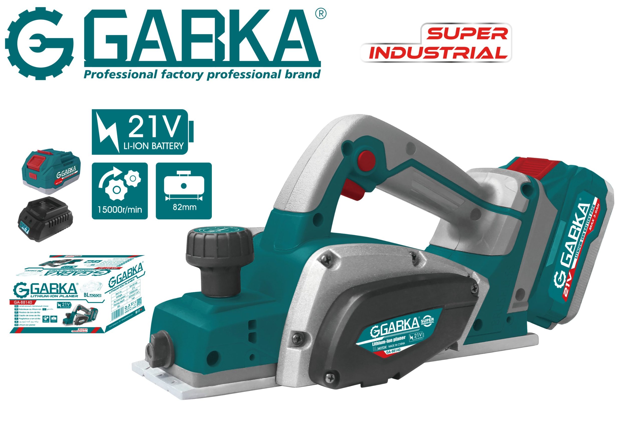 GA-88140A 21V πλάνη λιθίου BL Motor (1 μπαταρία + 1 φορτιστής)
